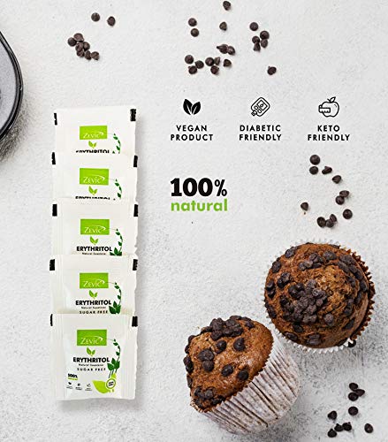 Zevic 100% Natural Erythritol Sugar Free Sachets | Zero Calories Sweetener Sachets | Vegan & Keto | Sugar Substitute Sachets Diabetic Friendly - 40 Sachets