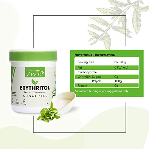 Zevic 100% Natural Erythritol Sugar Free Sweetener Powder | Zero Calories Sugar Free Powder | Vegan & Keto | Diabetic Friendly Sugar Powder | Organic Sugar Free Erythritol Powder - 300g