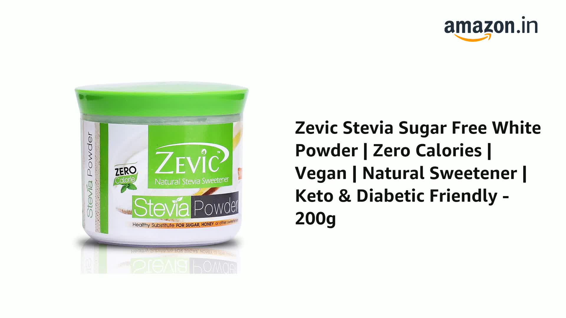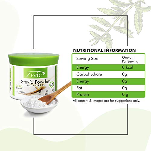 Zevic Stevia Sugar Free White Powder | Zero Calories | Vegan | Natural Sweetener | Keto & Diabetic Friendly - 200g