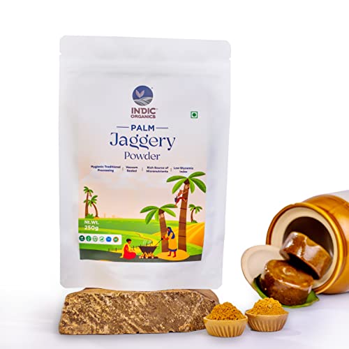 HomeGroceryCookingOrganic JaggeryIndic Organics Palm Jaggery Powder | Made by Traditional Stirring Method | Chemical Free | Low Glycemic Index | Ole Bella, Karupatti or Palm Sugar | Healthy Sweetener for Tea or Coffee (250 Grams)