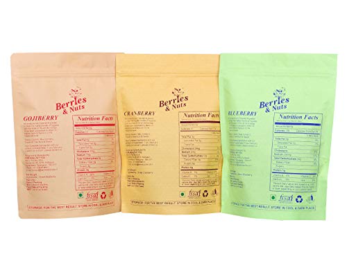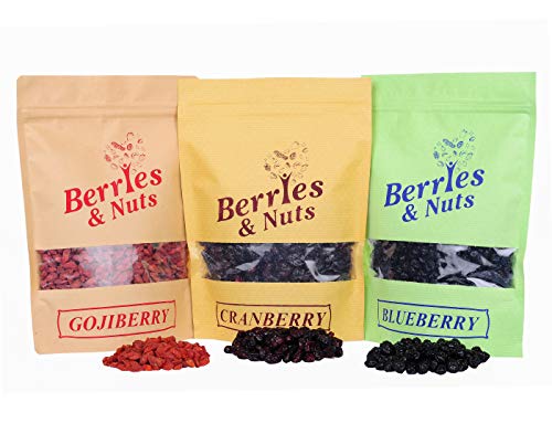 Berries And Nuts Dried Berries Combo | Cranberries Blueberries & Gojiberries 250 Grams Each