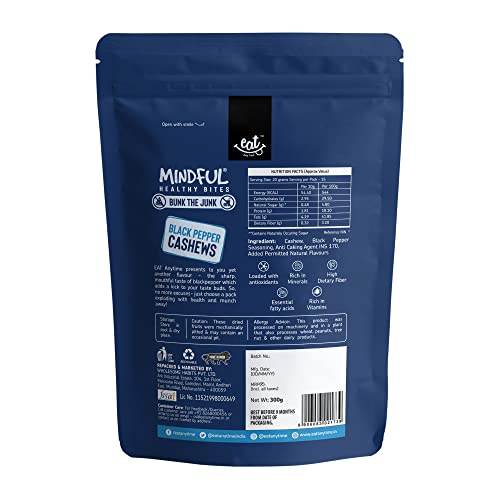 Eat Anytime Mindful Healty Black Papper Cashews Kaju | Rich Vitamin & High Protein | Cashews For Heathy Diet | Healthy & Energy Cashews Nuts - 300gm