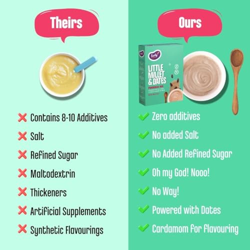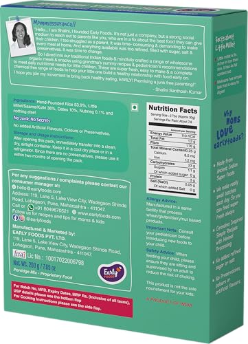 HomeGroceryNutsDatesEarly Foods - No Added Sugar No Salt Porridge - Little Millet Cereal with Dates Porridge Mix | No Preservatives | Kids Cereal | Sweetened with Dates | No Milk Powder 200g