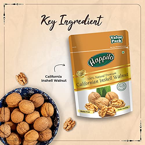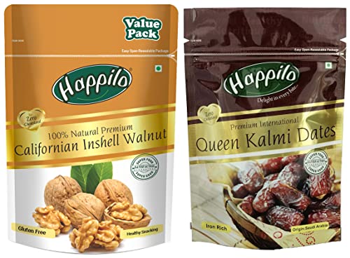 Happilo Premium 100% Natural Californian Inshell Walnut Kernels Value Pack Pouch,Raw 500g & Premium International Queen Kalmi Dates, 200g (Pack of 2)