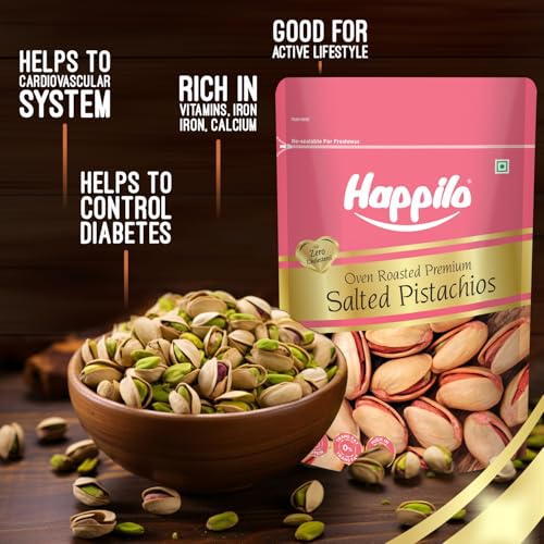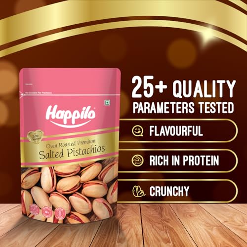 Happilo Premium Iranian Roasted & Salted Pistachios 200g | Whole Shelled Pista | Super Crunchy & Yum