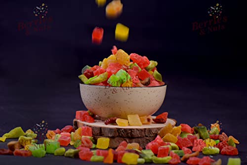 Berries And Nuts Candied Mixed Dried Fruits | Sun Dried Fruits - Pineapple, Apple, Papaya, Mango, Pomelo | 600 Grams | 3 Bottle of 200 Grams