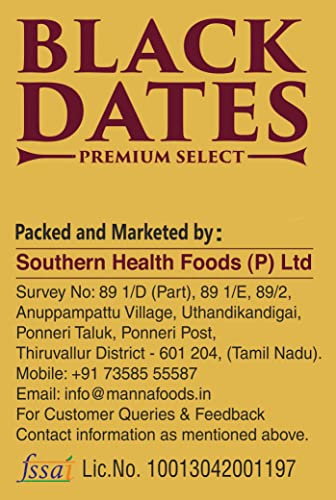 Manna Black Dates 1kg Pack + 200g - Premium imported black dates. 100% Natural. Rich in Iron Fibre &