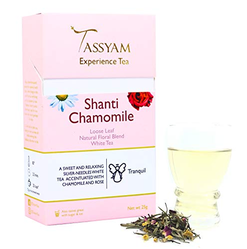 Tassyam Shanti Chamomile White Tea 25g | Luxury Box - Rose and Chamomile Blend - Silver Needles Loos