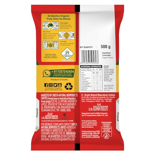 24 Mantra Organic Raw Peanut, 500g (Pack of 2)