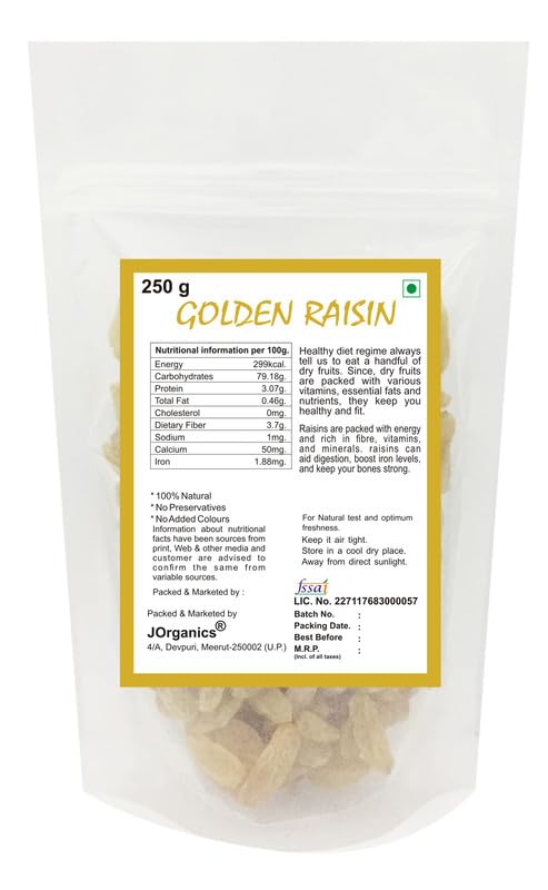 JOrganics Golden Raisin Dry Fruits Nuts & Seeds | Healthy Natural Snack | Rich in Protein Fiber & Antioxidants | Boost Energy & Immunity | 100% Pure & Fresh 250gm