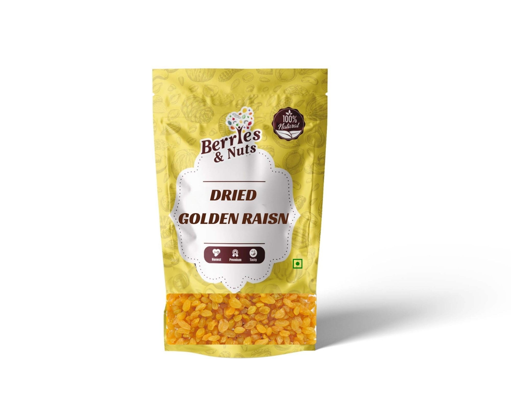 Berries And Nuts Premium Dried Golden Raisin | Dried Indian Yellow Kishmish, Pilli Kishmish | 250 Grams