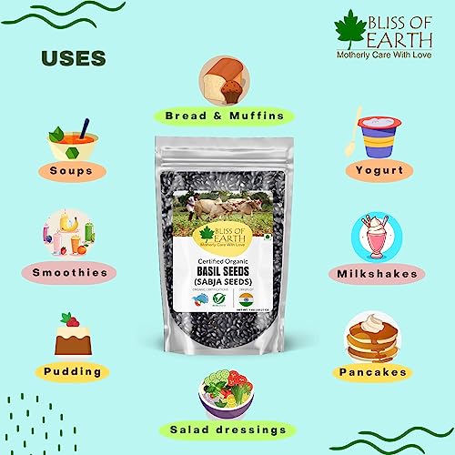 Bliss of Earth Basil Seeds Organic Sabja Seeds, Tukmaria Seeds Fiber & Omega-3 Rich Good for weight loss, Hydration Tiny PowerHouse Seeds 3x100gm
