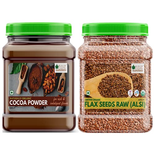 Bliss of Earth Combo Of Organic Raw Flax Seeds(600gm) For Eating & (500gm) Alkalized Dark Cocoa Powder for Chocolate Cake Making & Chocolate Hot Milk Shake Unsweetened