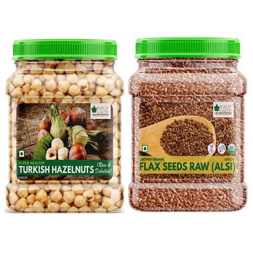 Bliss of Earth Combo Of Turkish Hazelnuts (500gm) Raw & Dehulled Healthy & Tasty And Organic Raw Flax Seeds (600gm) for Eating and Weight Loss Rich in Omega (Pack Of 2)