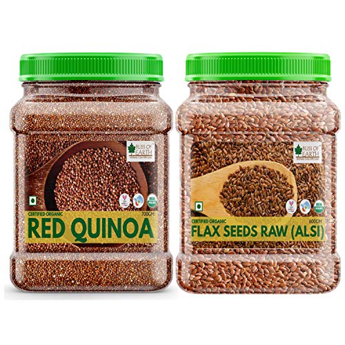 Bliss of Earth USDA Combo of Organic Red Quinoa (700gm) and Flax Seed (600gm) for Weight Loss Raw Super Food Pack of 2