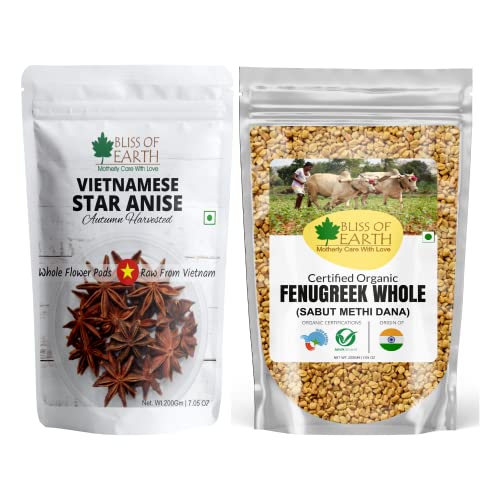 HomeGroceryNutsSeedsBliss of Earth Vietnames 200gm star anise chakra phool + Indian 200gm Fenugreek seeds (methi dana) spices and masala For Boosting metabolism & Immunity | Weight Loss | Healthy cooking