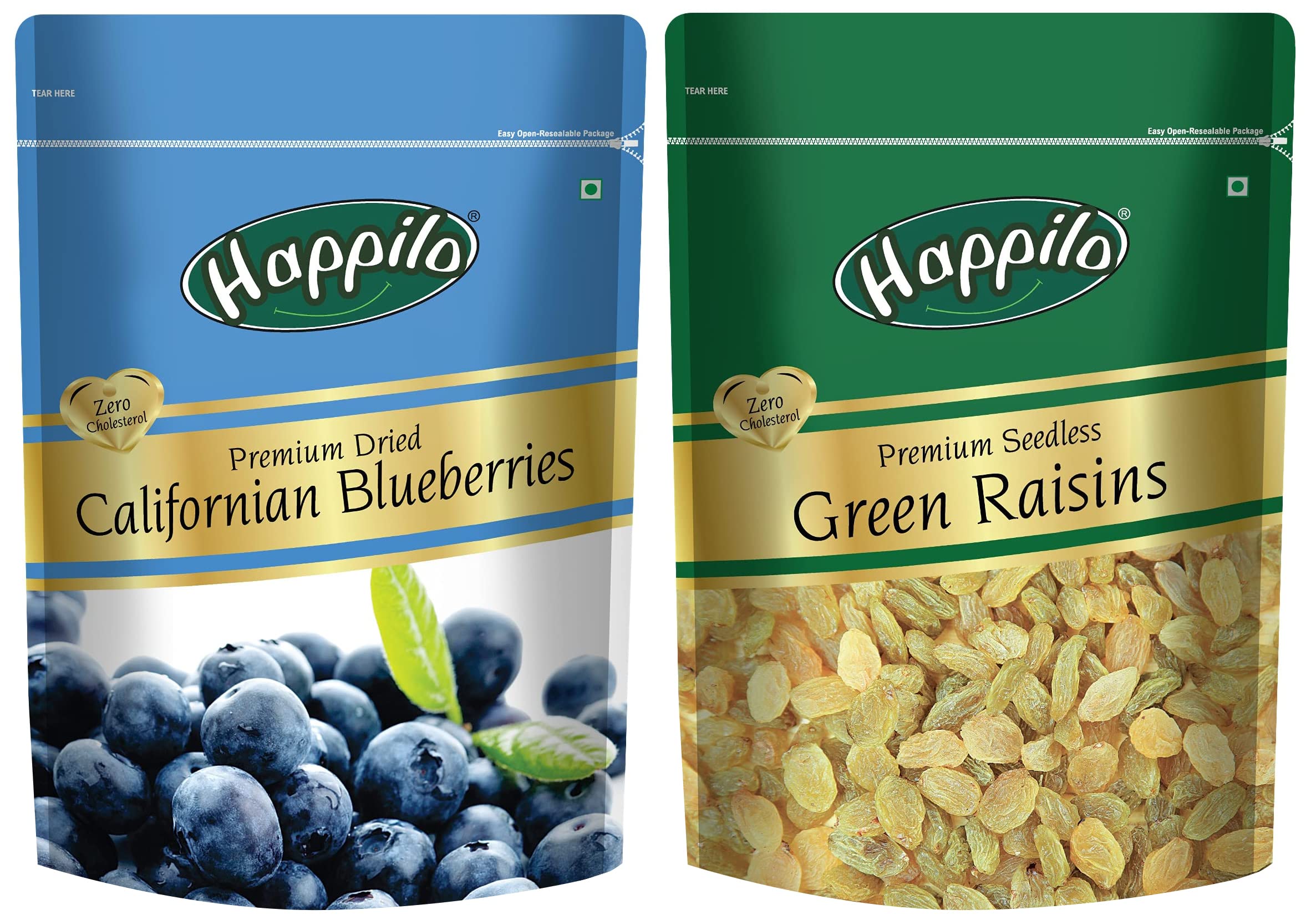 Happilo Premium Seedless Green Raisins 250g & Premium Dried Californian Blueberries 150 g (Pack of 1)