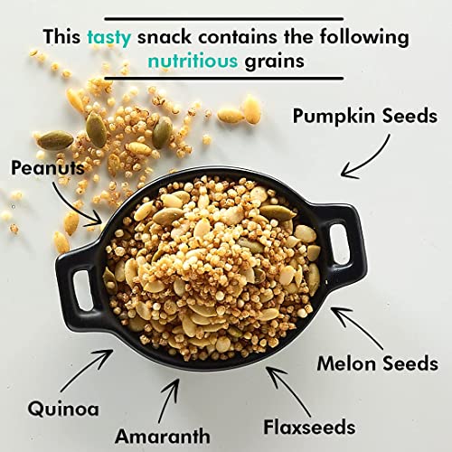 READY TO EAT TASTY & SUPER NUTRITIOUS QUINOA SEEDS SNACK : These Sugar free high Fibre & high Protein snacks are healthy for all. It is a lightly spiced & delightfully healthy combination of Quinoa Seeds Jalapeno & Amaranth