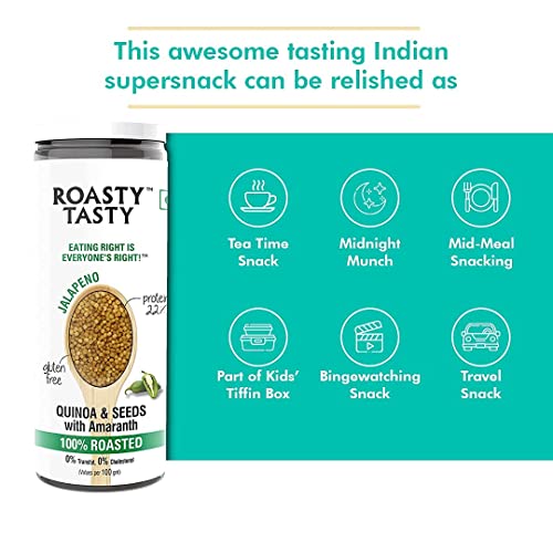 Roasty Tasty Roasted Quinoa Seeds with Amaranth Jalapeno Flavour Super Snack Diet Food for Weight Loss Quinoa Puffs Snack Combo Pack Offer Pack of 2-200gm (100gm Each)