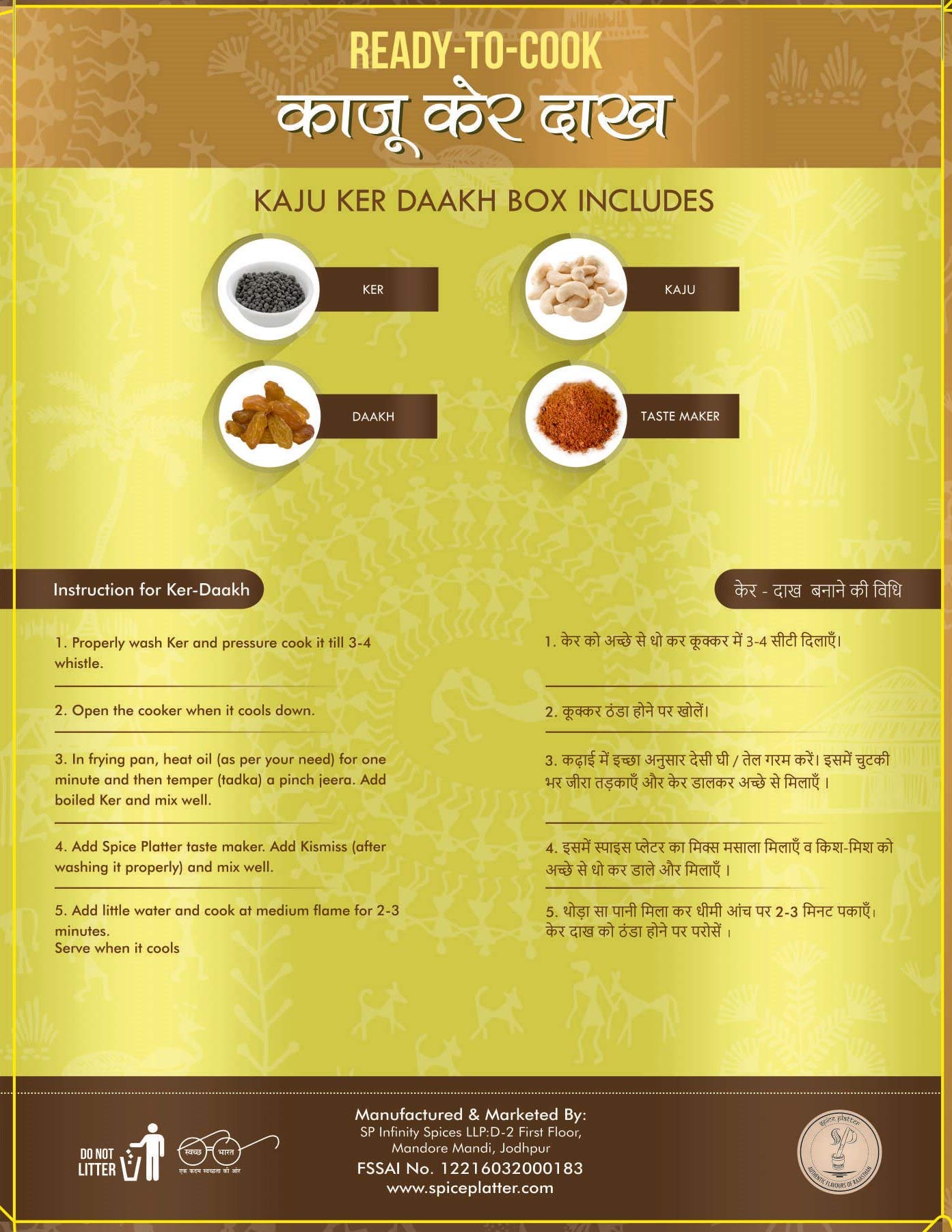 With Spice Platter Ready to cook Kaju Ker Kismish it is so easy to get the same traditional taste anytime. This instant cook pack has all ingredients with the taste maker of the culinaty dish.