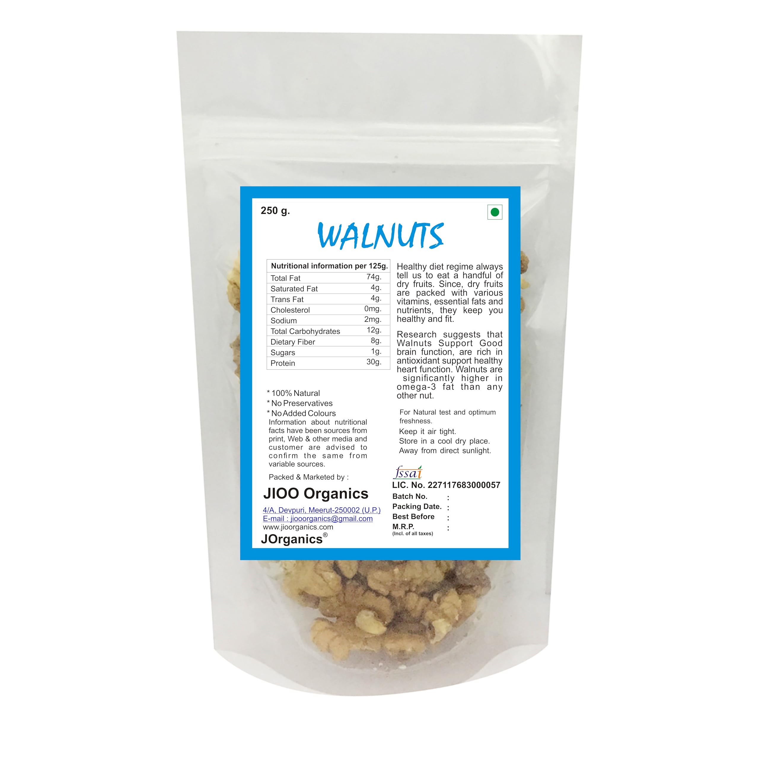 JOrganics Premium Walnuts Dry Fruits and Nuts 100% Natural Dried Walnut without Shell | Natural Akhrot Giri | Delectable and Crunchy | Healthy Snack 250GM