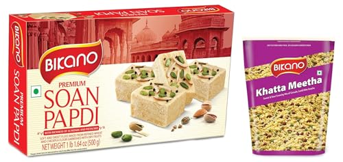 Bikano Khatta Meetha, 1kg & Bikano Soan Papdi, Milk 500 Gm Extra 20% (500g+100g Extra)