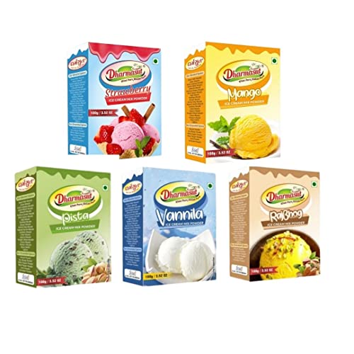 DHARMASUT Strawberry + Mango + Pista + Vanilla + Rajbhog Ice Cream Powder|Pack Of 5|500 Gm