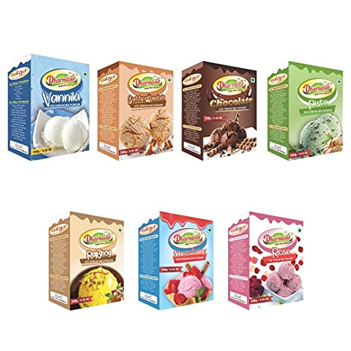 Dharmasut Vanilla + Butterscotch + Chocolate + Pista + Rajbhog + Strawberry + Rose Icecream Powder 700g (Pack of 7)