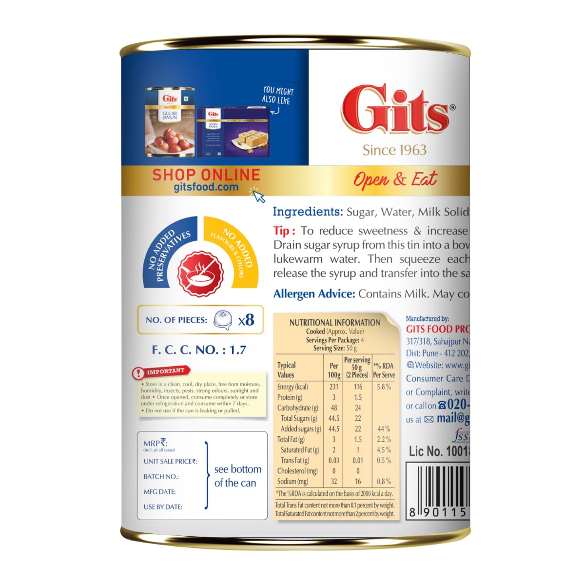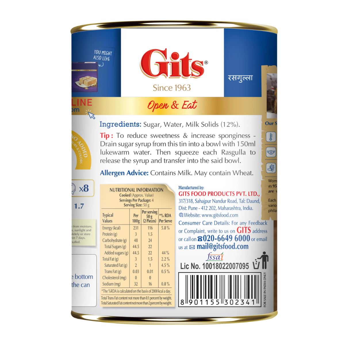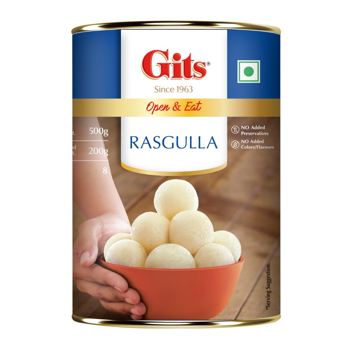 Gits Rasgulla Tin | 500gm, 8 Pieces |Open & Eat | Mouth-Watering Indian Mithai | Delicious, juicy
