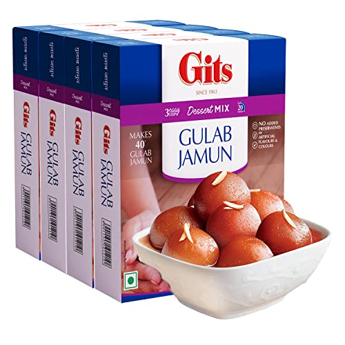 Gits Instant Gulab Jamun Dessert Mix, Pure Veg, Indian Dessert And Mithai, 800G (Pack Of 4, 200Gm Each)