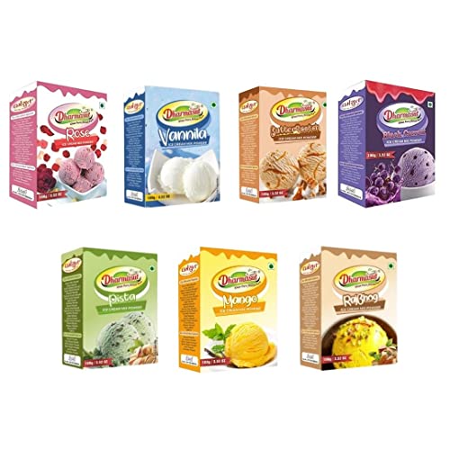 Strawberry + Vanilla + Butterscotch + Black Currant + Pista + Mango + Rajbhog Ice Cream Powder 700g (Pack of 7)