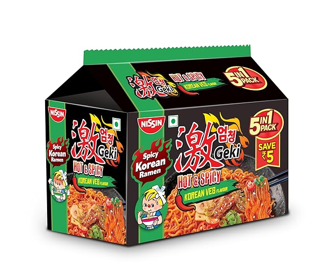 HomeGroceryInstantPasta & NoodlesGeki Nissin Hot & Spicy Korean Ramen Instant Veg Noodles | Fiery Korean Flavors with Premium Ingredients for a Quick, Delicious Meal | 400 gm (5 in 1 pack)