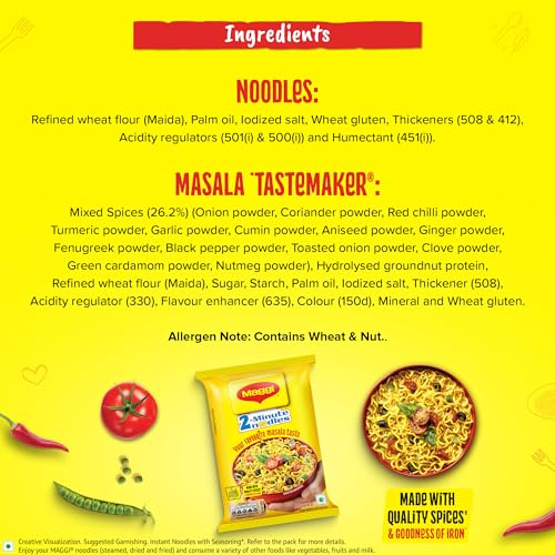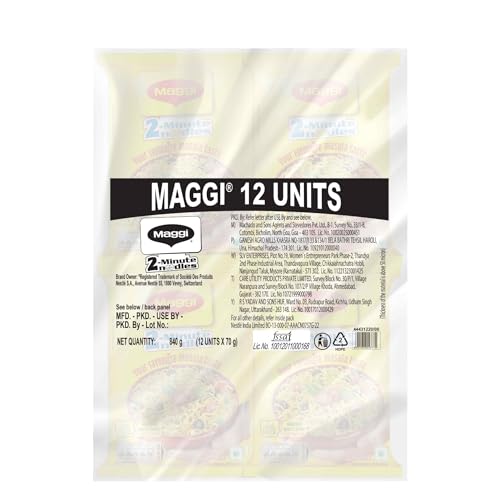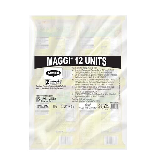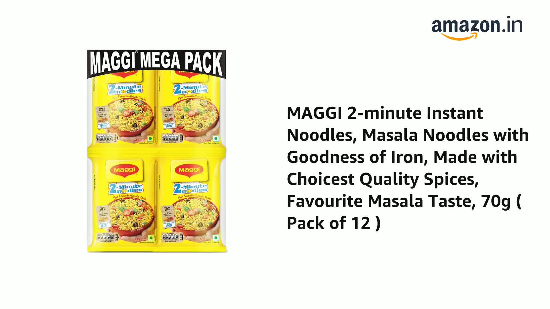HomeGroceryInstantPasta & NoodlesMAGGI 2-Minute Instant Noodles,Masala Noodles With Goodness Of Iron,Made With Choicest Quality Spices,Favourite Masala Taste, 840 g Pouch (Pack of 12, 70 g each)