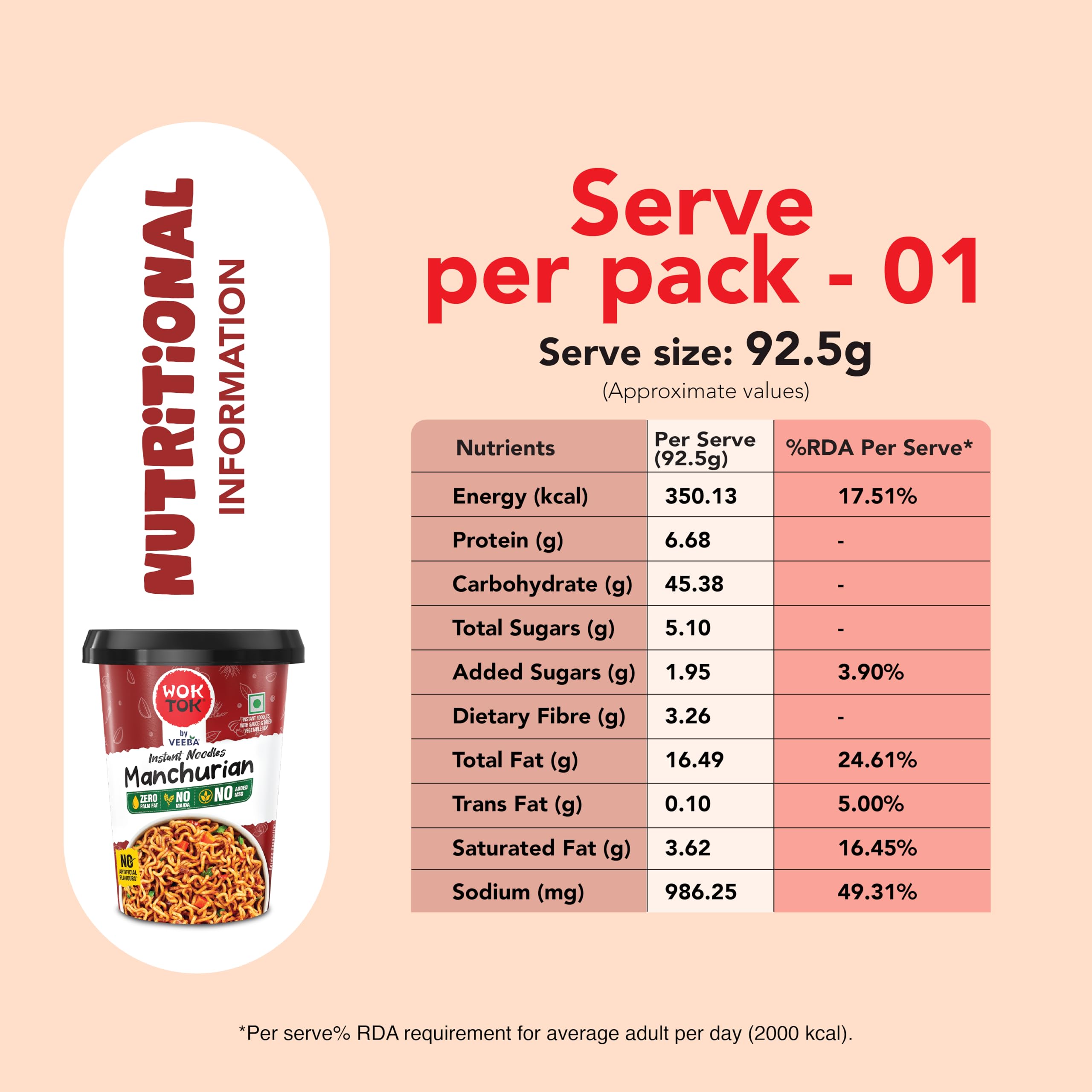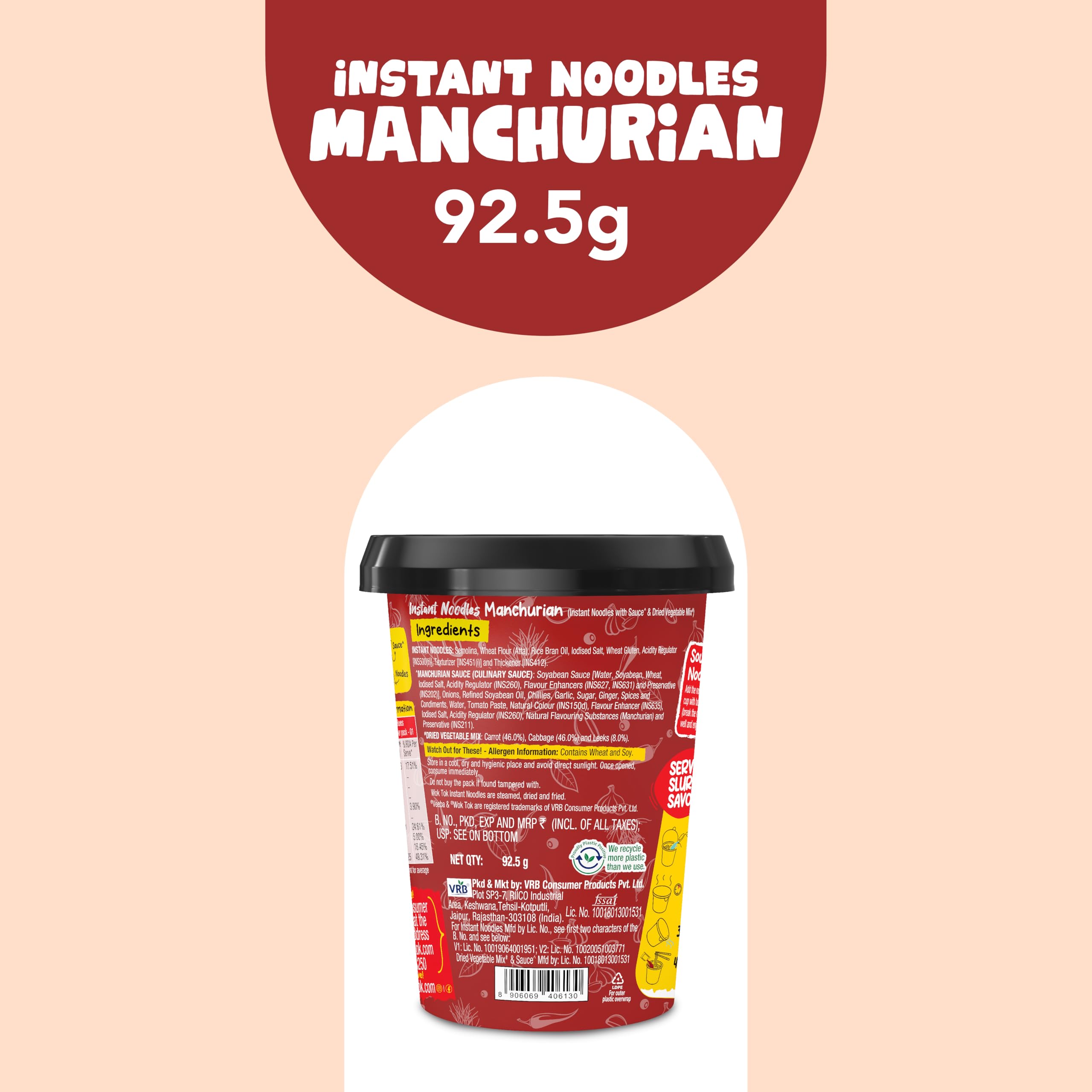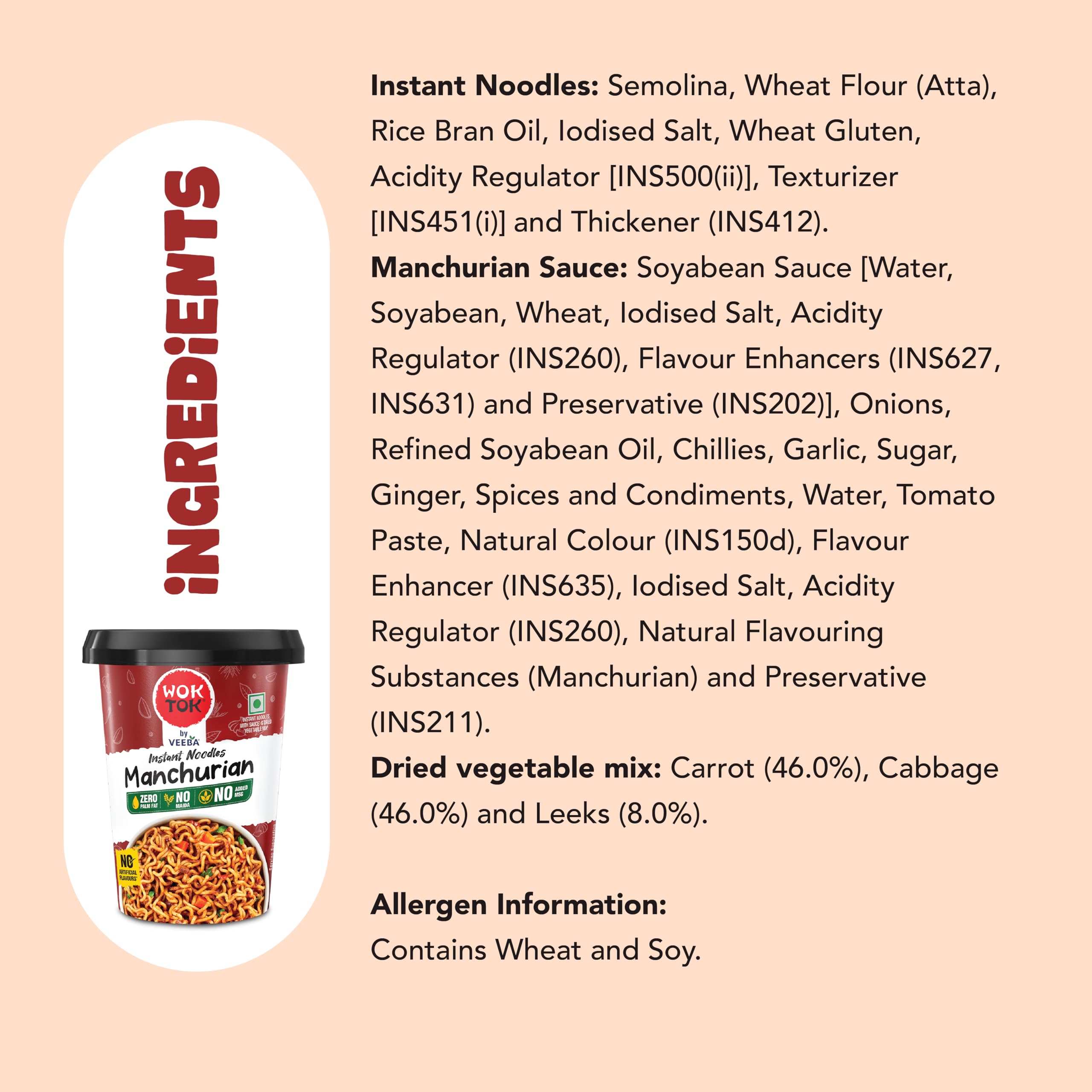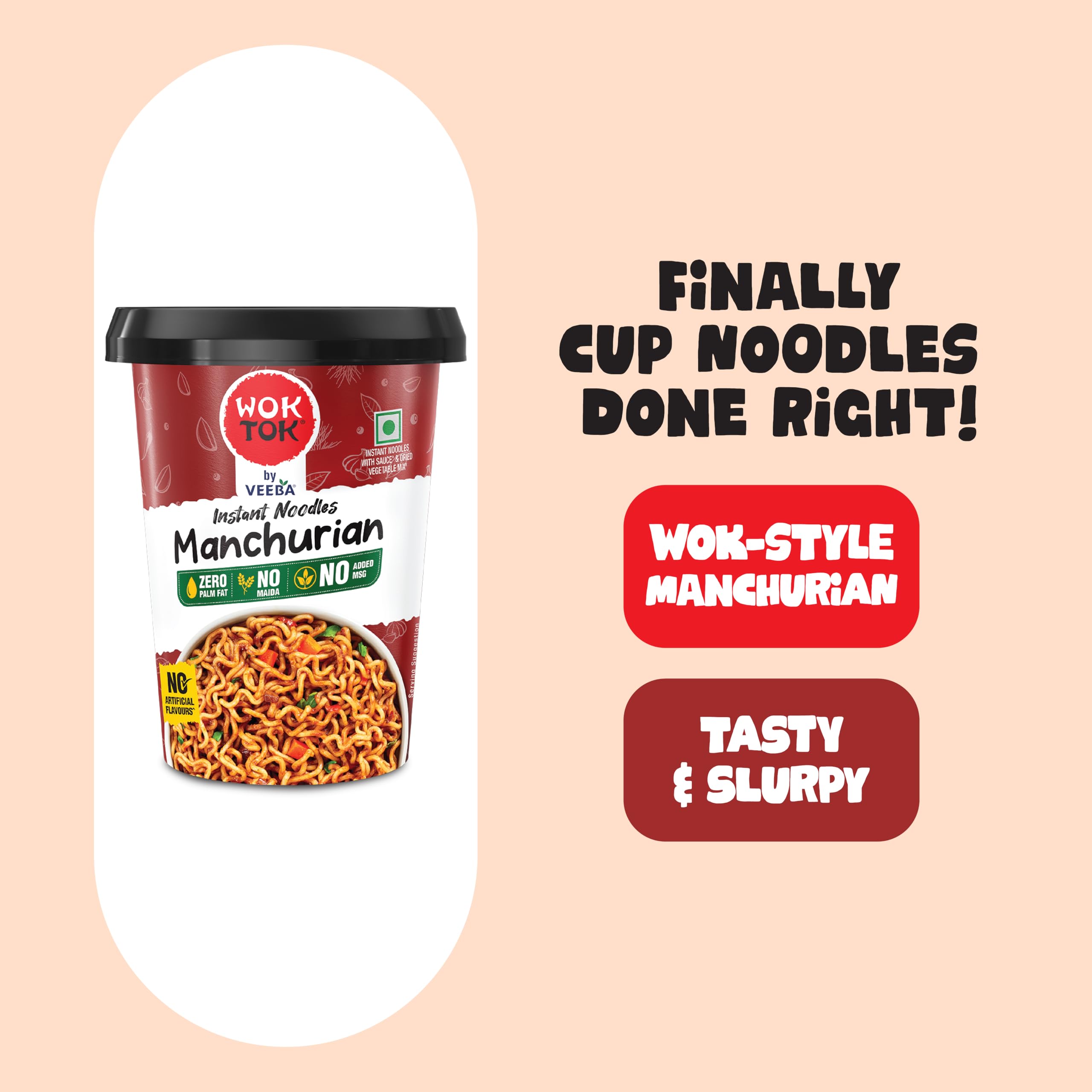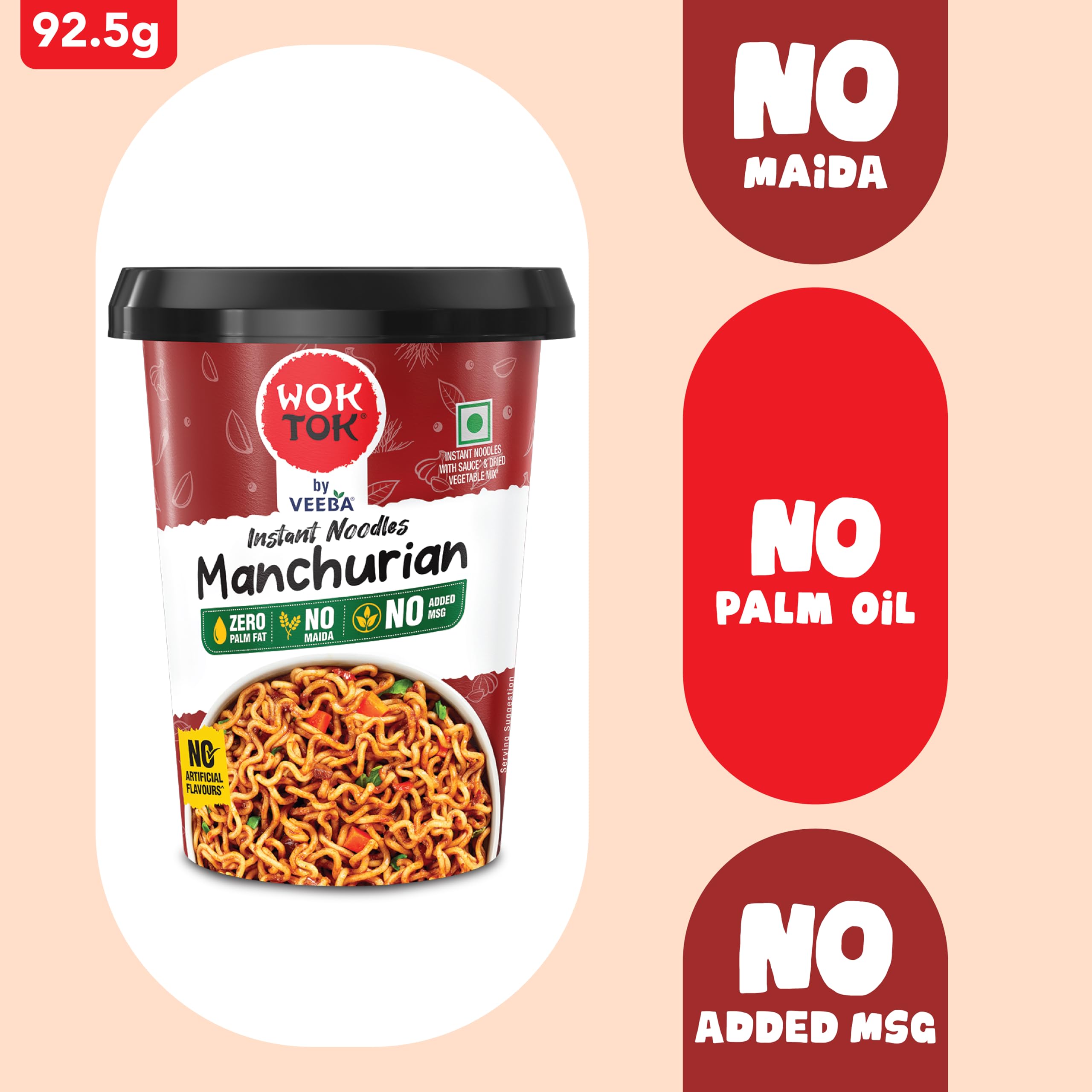VEEBA Wok Tok Instant Cup Noodles Manchurian | Made with no palm oil| no maida | no added MSG Vegetarian 92.5 gram
