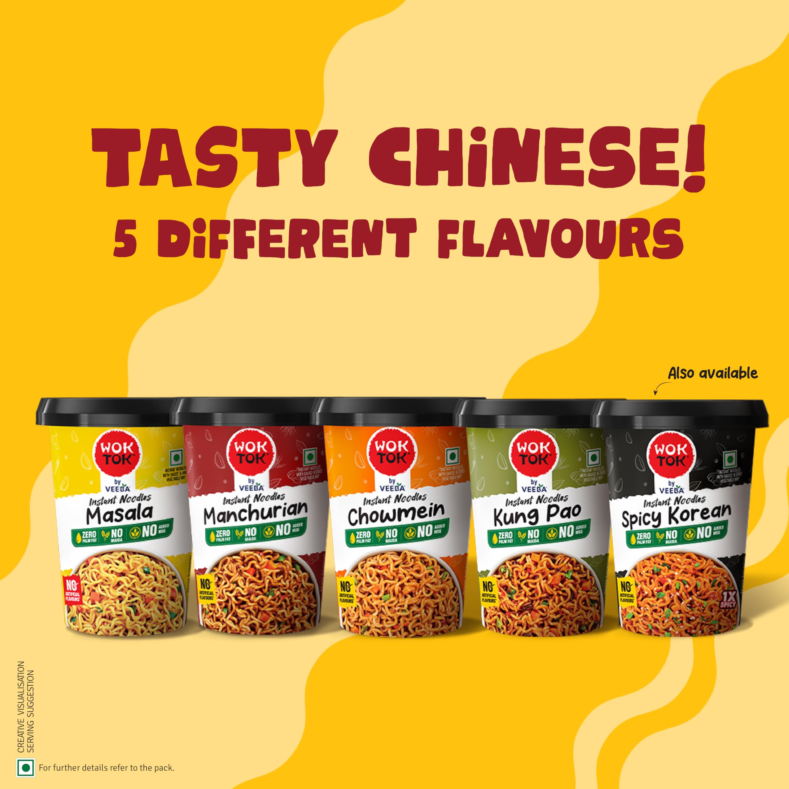 Wok Tok Instant Noodles Manchurian brings the spicy wok-style Manchurian taste in a quick convenient cup noodle format exactly how cup noodles should taste