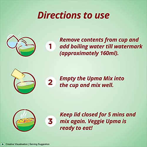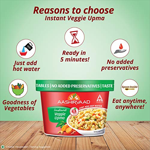 Convenient and ready-to-eat Aashirvaad brings to you Instant Veggie Upma which can be ready in 5 minutes. Just add hot water and stir