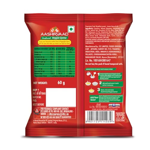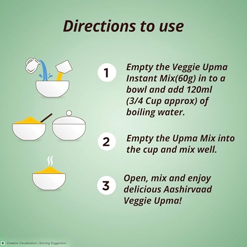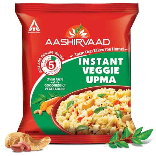 Aashirvaad Instant Veggie Upma, 80g, Ready to Eat Upma with Added Vegetables | 5 Mins Instant Breakfast | 60g