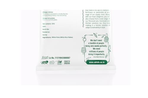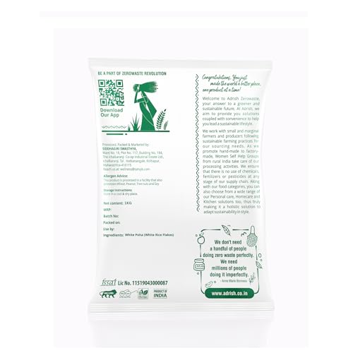 Adrish Zerowaste Organic White Poha (1kg) - Unpolished Flattened Rice | Rich in Dietary Fibers & Nutrients | Medium Poha | Unpolished Poha | High in Fibre Poha