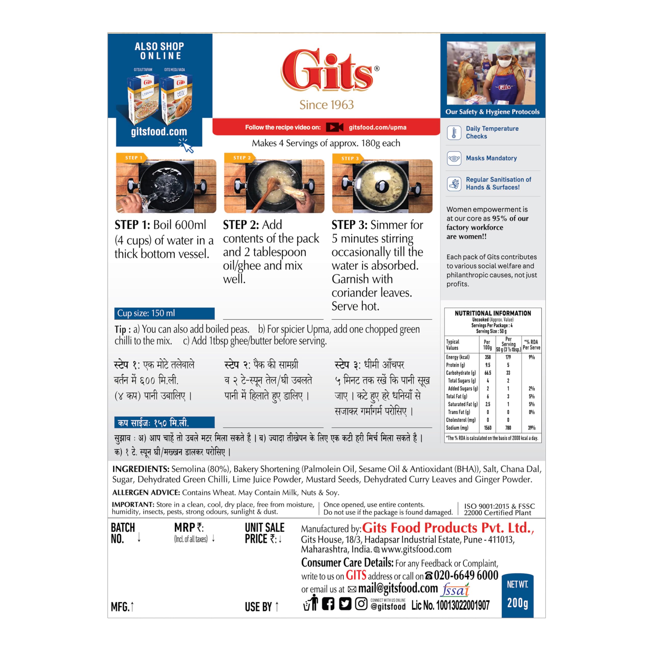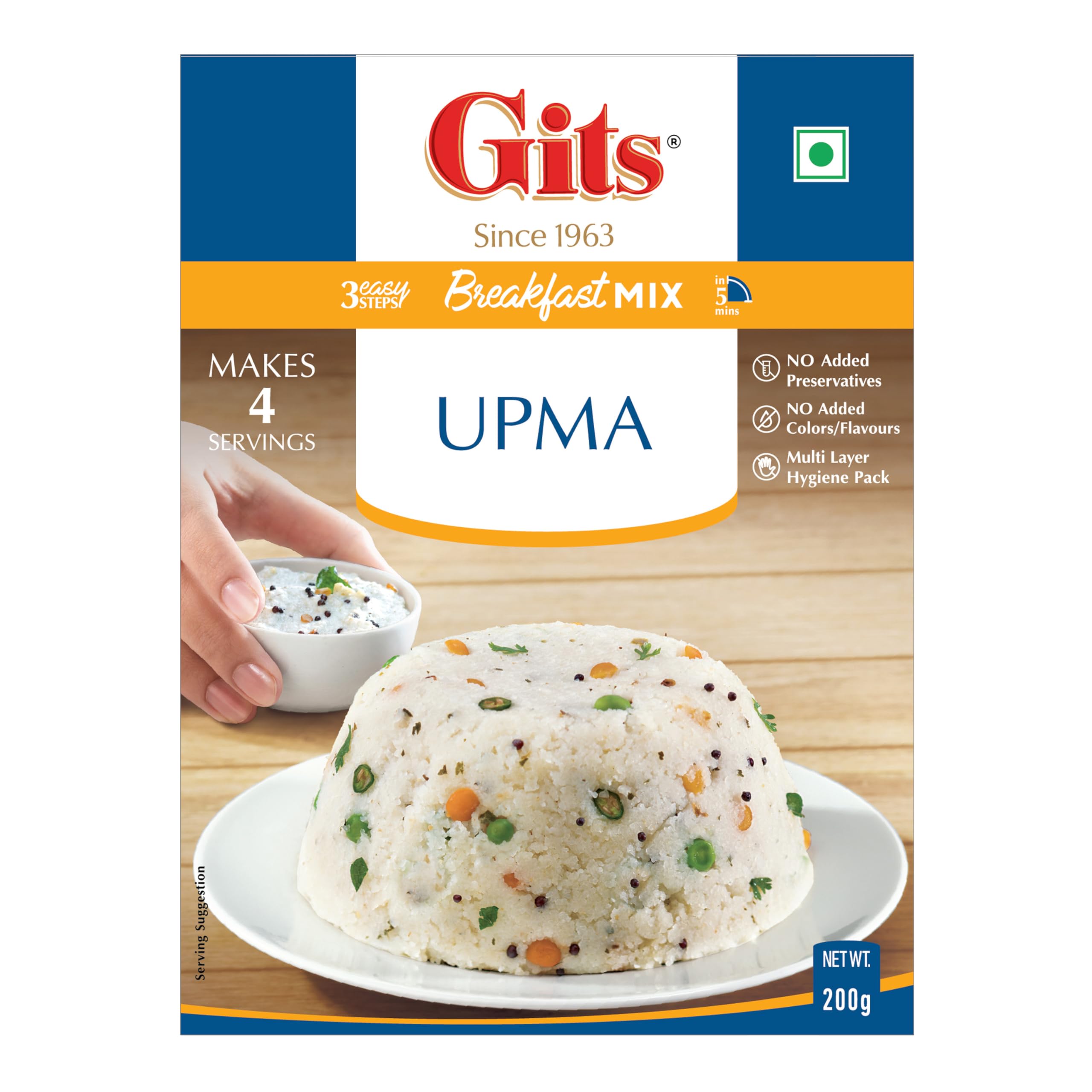 Gits Instant Upma Breakfast Mix, Pure Veg, 200g