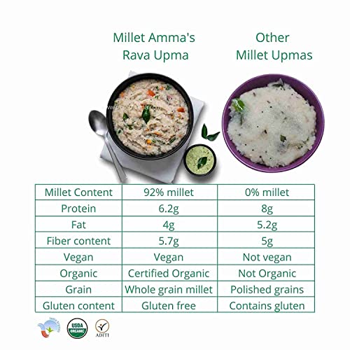 Millet Amma CERTIFIED ORGANIC Millet Breakfast Rava Upma - 250 gm and Pongal Mix - 250 gm, Combo Pack - 500 gm, Easy & Ready to Cook, Instant Millet Breakfast Mix, 100% Vegan