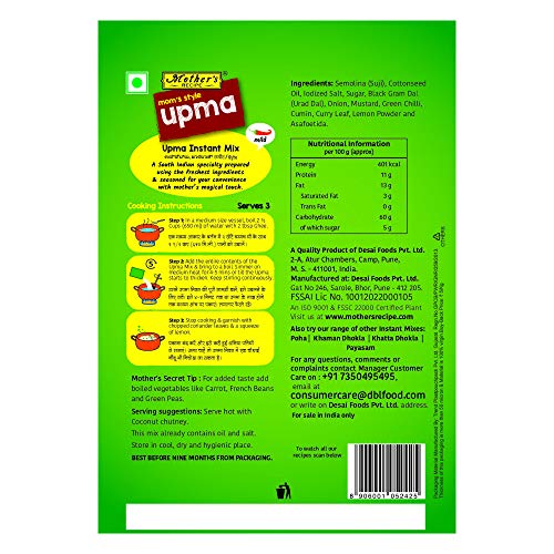 Mother's RECIPE Instant Upma Mix | Pack Of 6