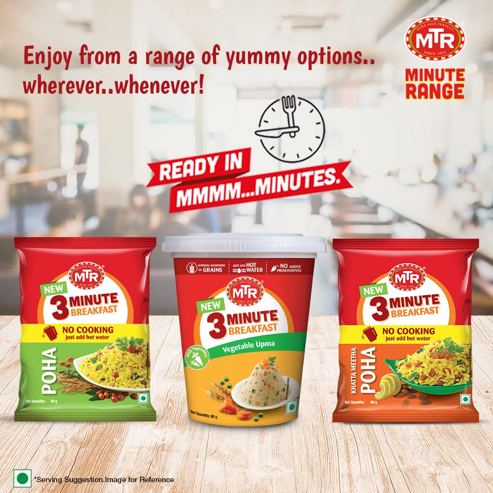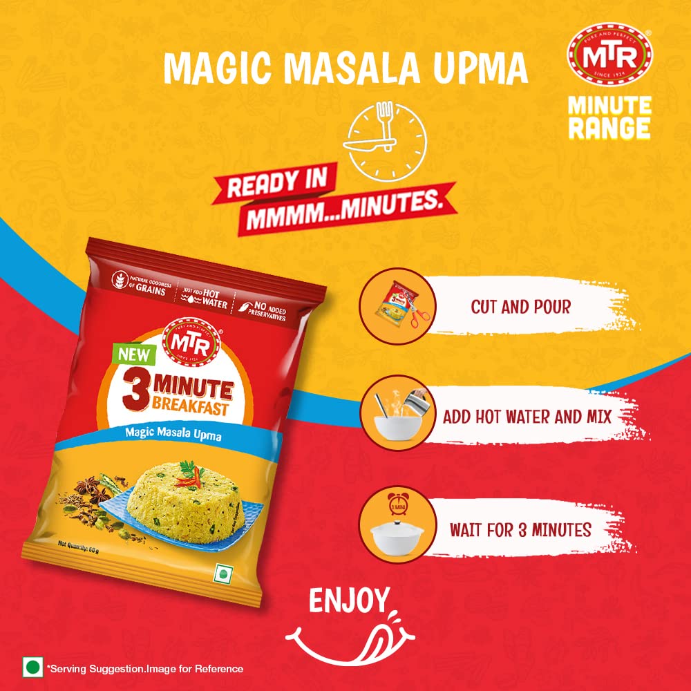 MTR 3 Minute Breakfast Magic Masala Upma | Just Add Hot Water | Wholesome Instant Breakfast | Spiced Semolina | No added preservatives | 60g Pouch
