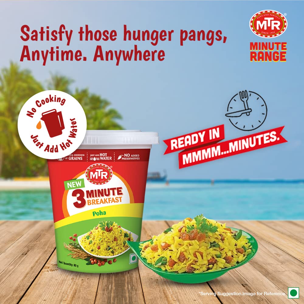 MTR 3 Minute Breakfast Poha- Cuppa | Just Add Hot Water | Wholesome Instant Breakfast | Spiced Flattened Rice | No added preservatives | 80g Cup