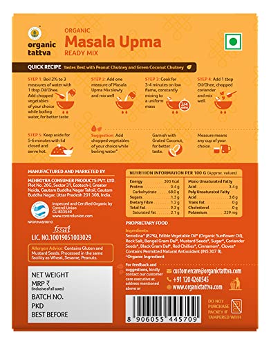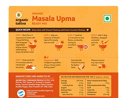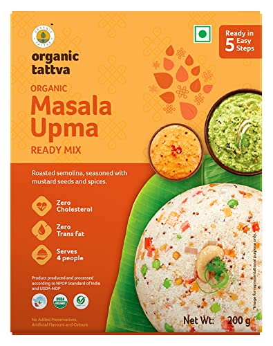 Organic Tattva, Organic Masala Upma Instant Ready Mix 800 Gram | Healthy Breakfast Mix, NO Cholesterol, NO Trans Fat | Rich in Fiber and Protein | Ready in 5 Easy Steps