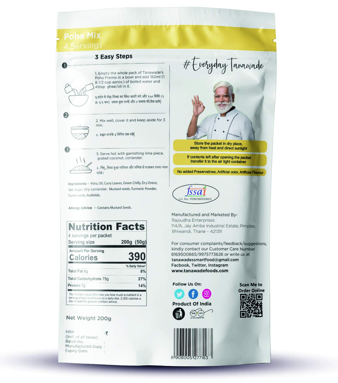 Tanawade's Smart Food Instant Poha Mix(Buy 3 Get 1 Free) Ready to Cook Home Food with Hand Picked Fl