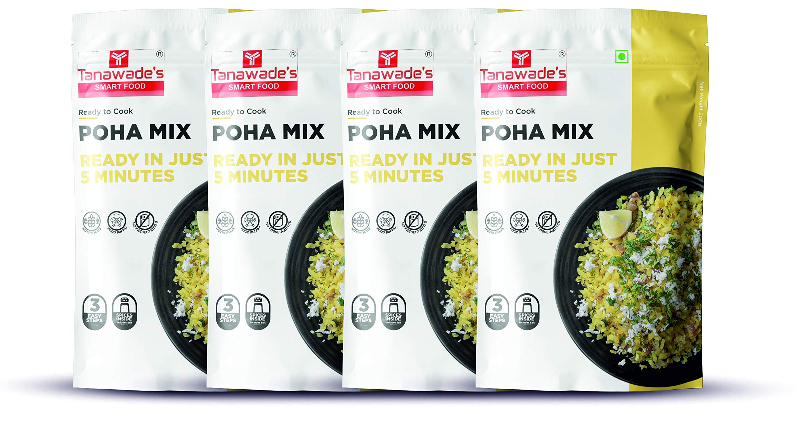 Tanawade's Smart Food Instant Poha Mix(Buy 3 Get 1 Free) Ready to Cook Home Food with Hand Picked Flavours Pack of 4