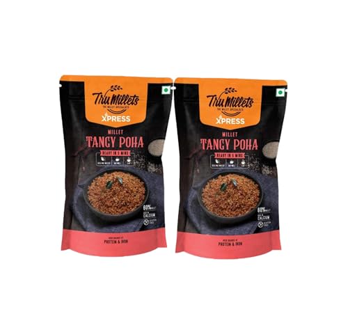 Trumillets Instant Kodo Millet Tangy Poha Powder Mix with Rice | Traditional Masalas Mix | Ready to Cook | Tasty Ready to Eat Tangy Poha | No Artificial Colors (Each 180 Gm Pack of 2)