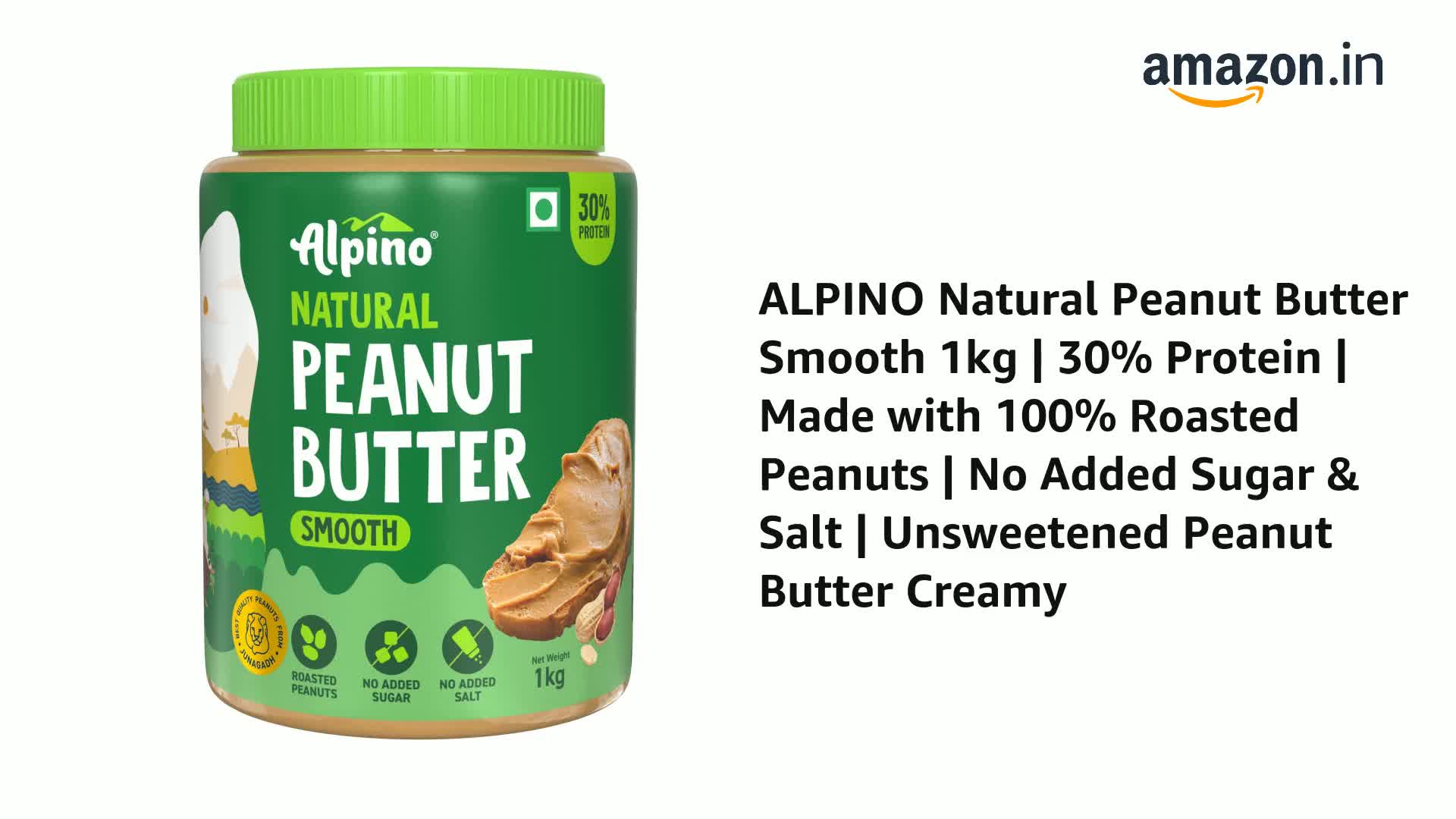 ALPINO Natural Peanut Butter Smooth 1kg – Unsweetened, 100% Roasted Peanuts - 30% Protein, Source of Healthy Fats, No Added Sugar & Salt