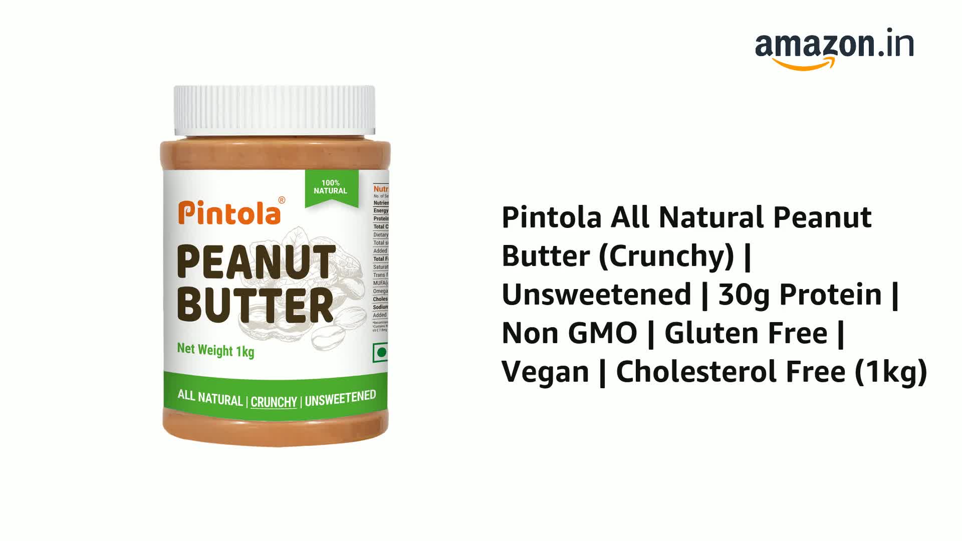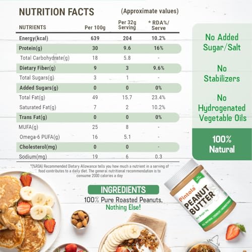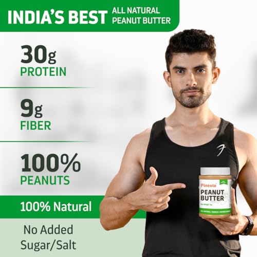 Pintola All Natural Peanut Butter (Crunchy) (1kg (Pack of 1)) | Unsweetened | 30g Protein | Non GMO