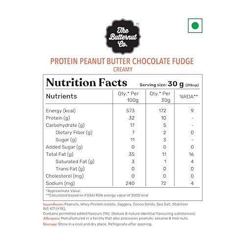 HomeGroceryFlavorsNut & Seed ButterThe Butternut Co. Protein Chocolate Fudge Peanut Butter,Creamy, Protein,No Refined Sugar,High Protein,Nutritious and Delicious Treat for All Natural, No Cholesterol - 800g (Pack of 1, 32 gram)